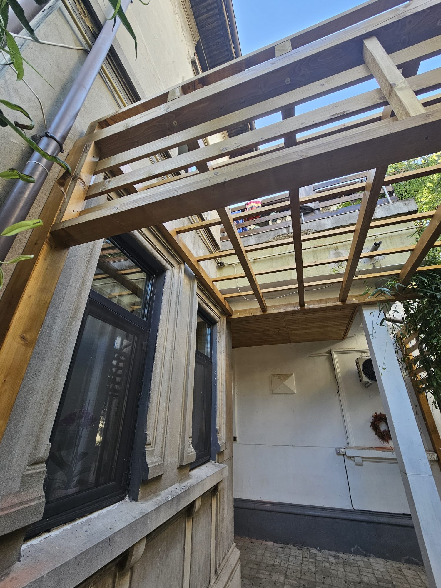 Va prezentam o pergola inalta ce inconjoara frumos o vila interbelica din centrul Bucurestiului.